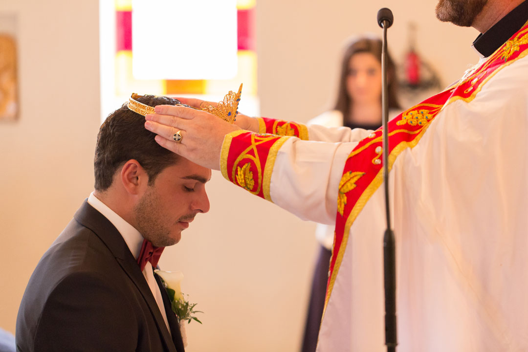 Wir trafen uns im Vorfeld bei den Brautleuten zu Hause um auch gleich die nicht unweit gelegene Hochzeitsräumlichkeiten zu besichtigen. Das Restaurant am Golfplatz in Ebreichsdorf bietet viel Platz, hat eine Bühne und ist sehr hell. Ideal auch länger ohne Blitz auszukommen. Hedy und Patrick erzählten uns viel über die aramäischen Bräuche und hatten uns ganz gut vorbereitet, sodass auch wir uns schon rechtzeitig darauf einstellen konnten. Da wäre zum Beispiel der Ringwechsel. Was sage ich dem Brautpaar immer: „Lasst euch Zeit beim Ringwechsel, das gibt schönere Bilder :-)“ Ja… also…. in diesem Fall steckt der Pfarrer den Ring an. Und dann wäre noch die Kronen Zeremonie, und die interessanten Laute, die das Publikum während der Trauung immer wieder von sich gibt. – aber diese Laute sind ohnehin nicht auf den Fotos drauf. Bei einer aramäischen Hochzeit ist es auch nicht unüblich, dass 500 Gäste und mehr geladen werden. Dafür fällt aber im Normalfall die Verpflegung nicht so üppig aus. In diesem Fall haben sich das Brautpaar bei der Menge der geladenen Gäste und der Verpflegung an uns gewohnte Situationen gehalten. Dann sei noch gesagt, dass die Party schon vor dem Essen und im Anschluss an das Essen voll loslegen wird. Da würde mehr oder weniger die ganze Zeit zur Musik getanzt werden. – Und genau so war es auch.