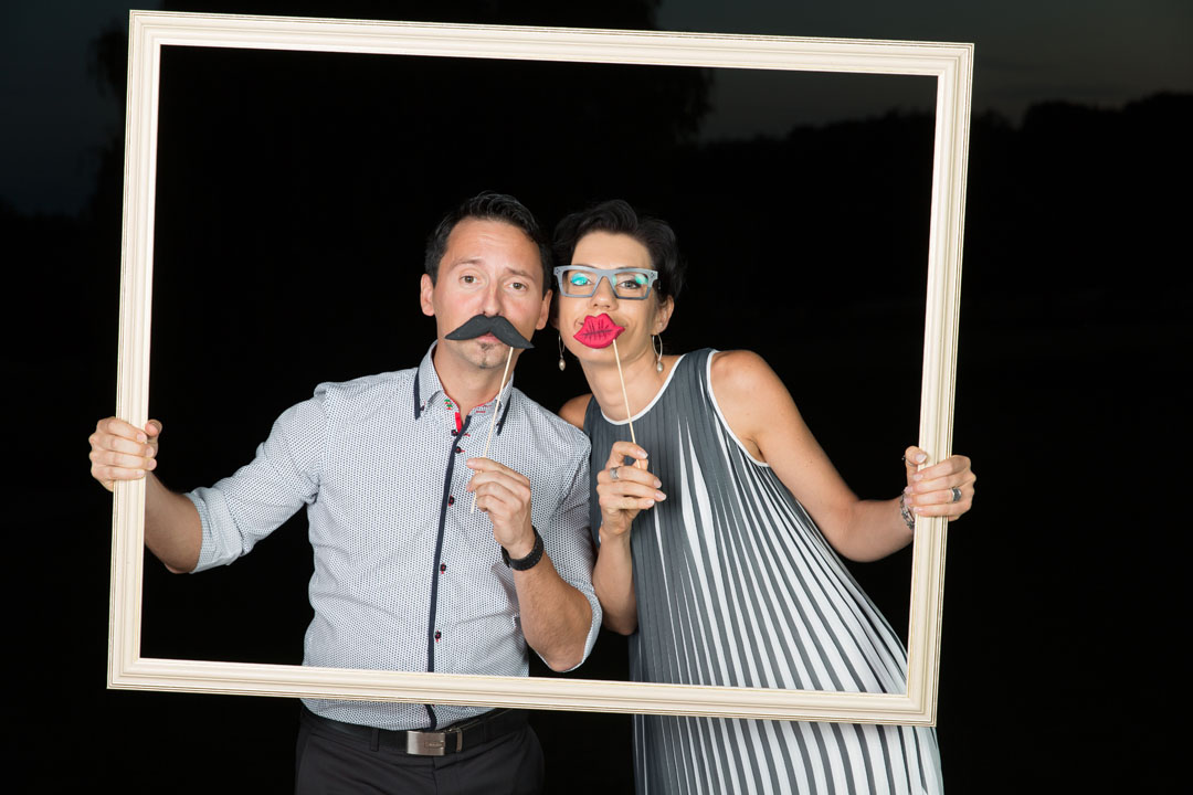 Auch ein Photobooth sollte her. Das haben wir in unserem Programm gleich mit Fotodruck und einem Gästealbum im Paket. Immer wieder eine gern genutzte Option, welche von den Hochzeitsgästen auch sehr geschätzt wird, und für das Brautpaar eine nette Erinnerung an diesen wundervollen Abend bietet.